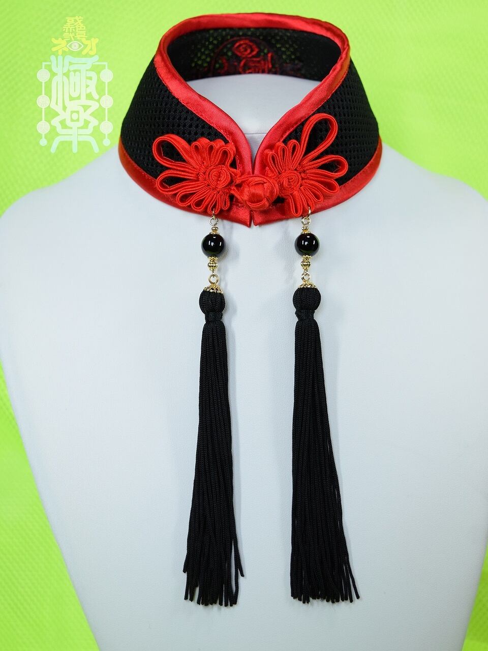コラボ中華襟チョーカー メッシュSサイズ(黒×赤)