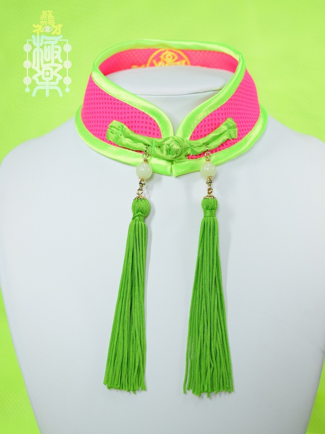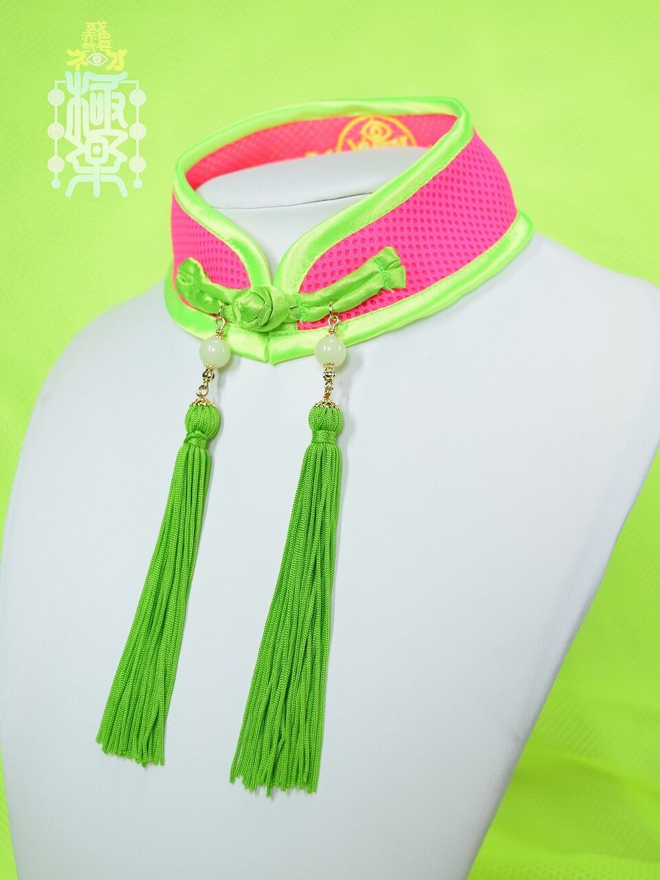 コラボ中華襟チョーカー メッシュMサイズ(ピンク×黄緑)